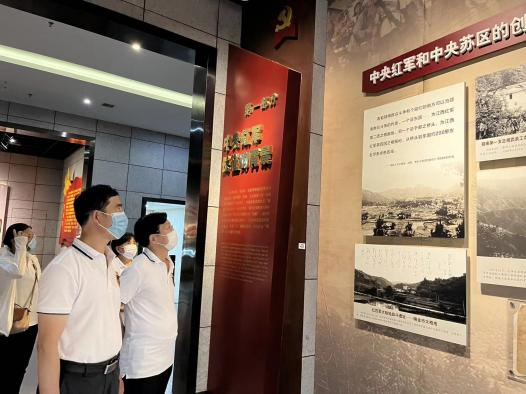 党员们在长征渡口感受到了革命先烈坚韧不拔、自强不息、勇往直前的长征精神。在红军长征出发地纪念馆内,党员们聆听着导游讲解着二万五千里长征的英雄事迹、参观着一件件见证长征的历史物件、聆听着红军长征的故事。一幅幅历史照片、一件件长征遗物,都展示着中央红军出发长征的历史,再现中国革命伟大转折及苏区人民支援红军的历史场景。