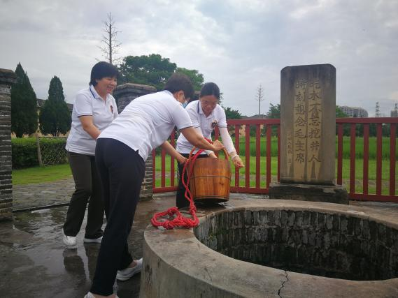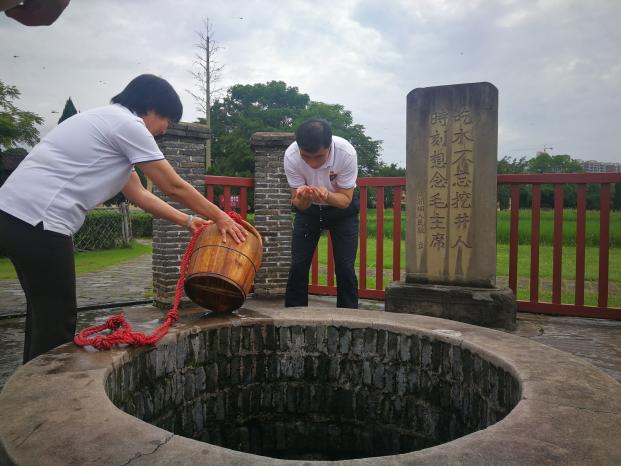 在沙洲坝的红井旁,党员们诵读了《吃水不忘挖井人,时刻想念毛主席》小学课本中的经典文章,品尝了甘甜的红井泉水,了解到红井背后的故事,更感受到共产党人为民谋幸福的初心。