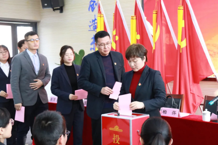 在庄重的氛围中,伴随着雄壮的《国歌》,大会正式开始。首先由集团理事长、党委筹委会总负责人柏萍做《江苏华杰教育集团党委成立筹建工作报告》,接着宣读并通过了《中共江苏华杰教育集团党委成立大会选举办法》,然后以无记名投票方式差额选举产生了首届中共江苏华杰教育集团委员会。