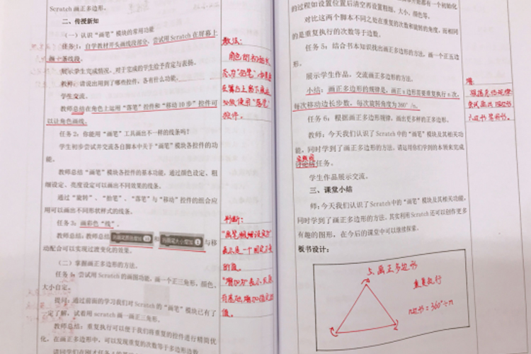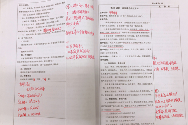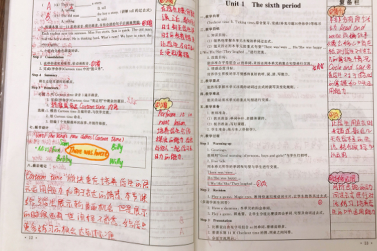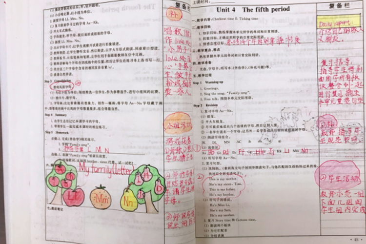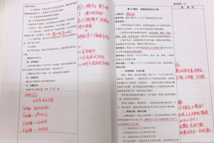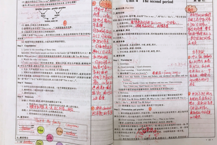 “工欲善其事,必先利其器”,教案编写的过程是老师钻研教材、构思教学的过程。一份好的教学设计凝聚着教师对教学的理解和感悟,体现出教师的创新力,呈现出教师对教学思想的追求,闪烁着教师的教学智慧和创造精神。 教案上工整的字迹体现了老师们认真严谨的态度,细致的标注蕴含着老师们思考探索的精神,即时的课后反思展现出老师们对待教学的严谨。