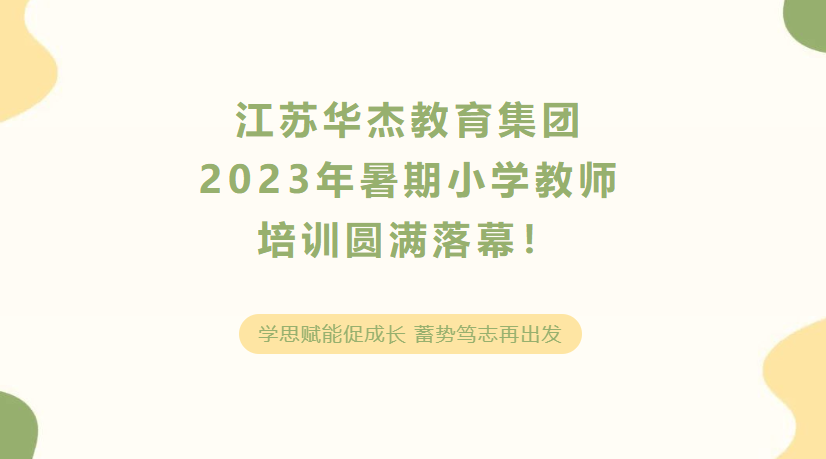 8月24日,江苏华杰教育集团2023年中学教师暑期培训落下帷幕。教师培训是教师学习成长的丰盈沃土,名师讲座、专家指导以及良师经验为教师的发展成长提供了充足的养料。