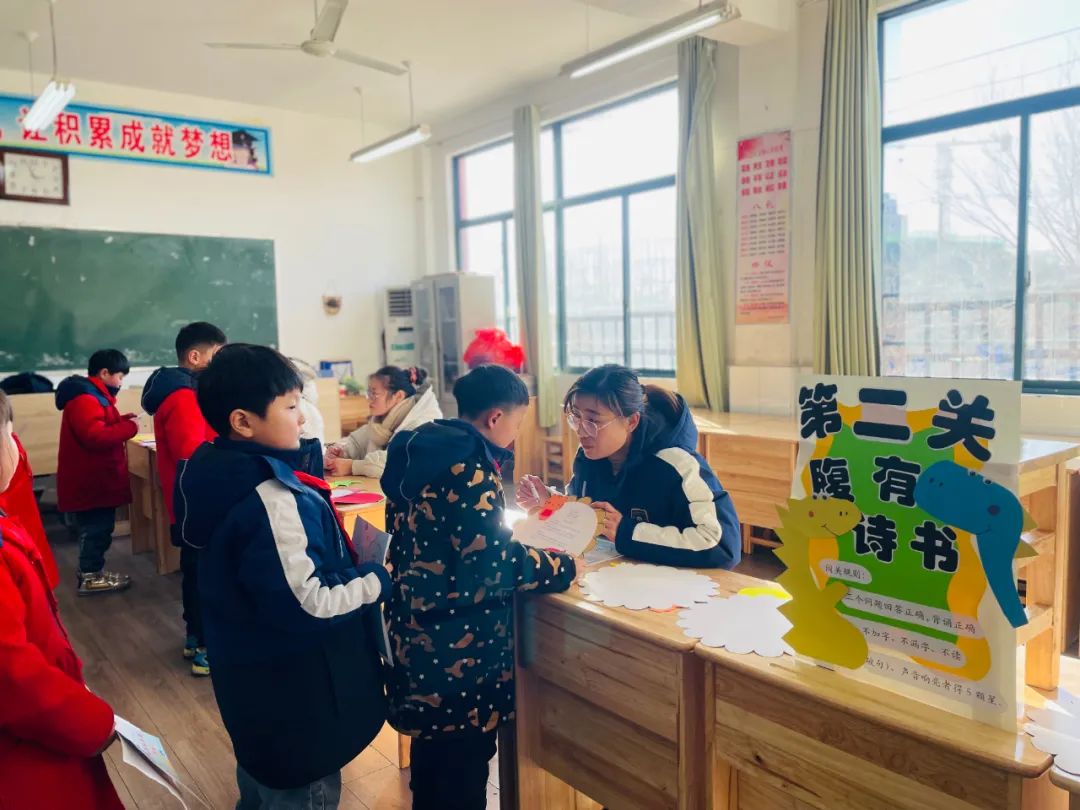本次期末测评结合孩子的年龄特点和心理需求,一二年级的语数外老师们精心准备了各个关卡,采用游园闯关摘星的活动形式,让学生从过重的作业负担中解放出来,在游考闯关中体验到成功的喜悦和童年的快乐,有效地激发了孩子的学习兴趣,让学生更加健康茁壮地成长。