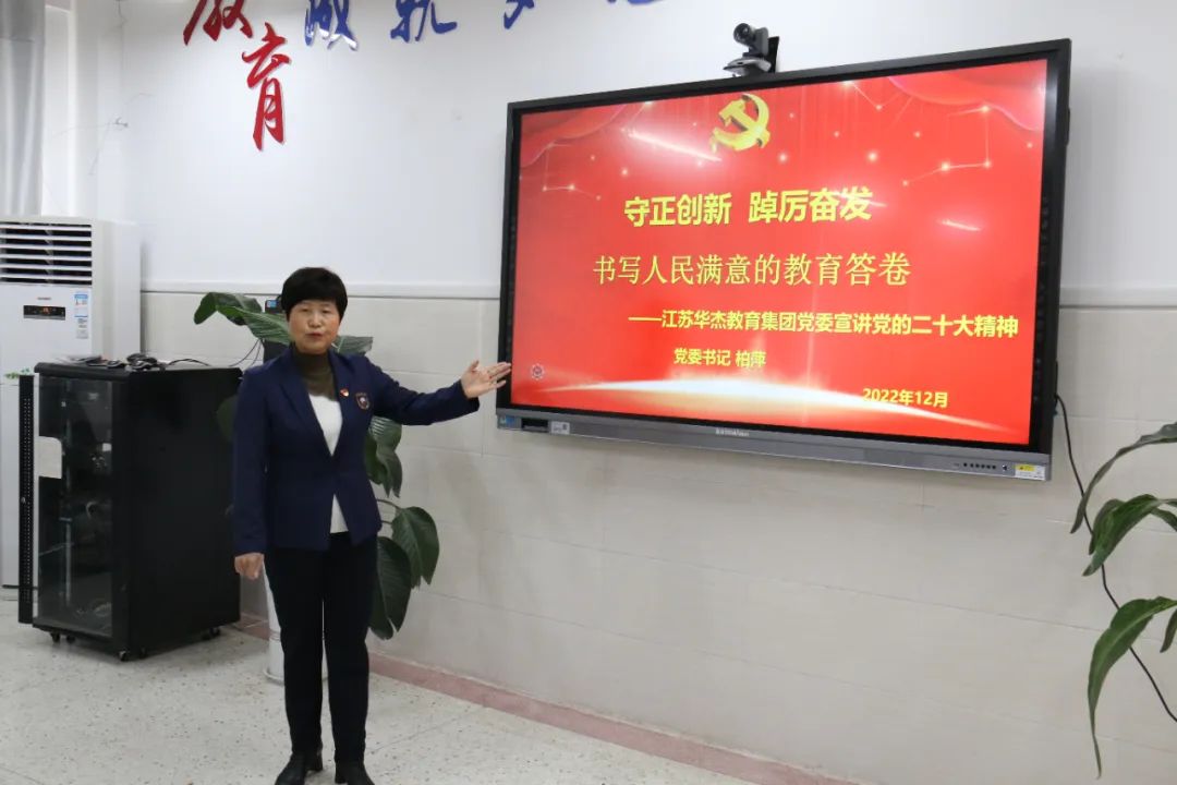 为深入学习宣传贯彻党的二十大精神,2022年12月16日,华杰教育集团党委举行学习贯彻党的二十大精神宣讲会,党委书记柏萍同志以《守正创新 踔厉奋发,书写人民满意的教育答卷…