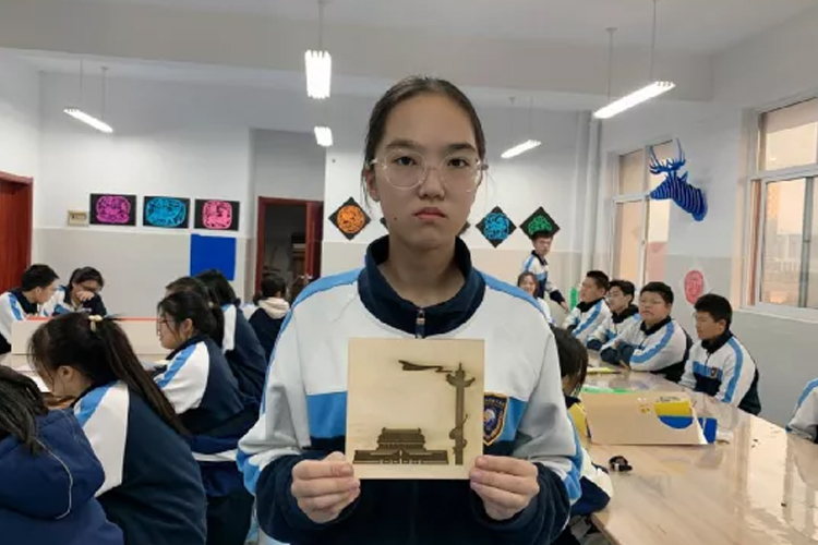 然后,在刘洪朋老师的指导下,同学们将设计好的图案导入电脑,生成激光雕刻文件,并雕刻出来。