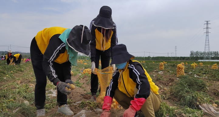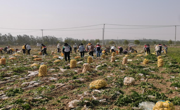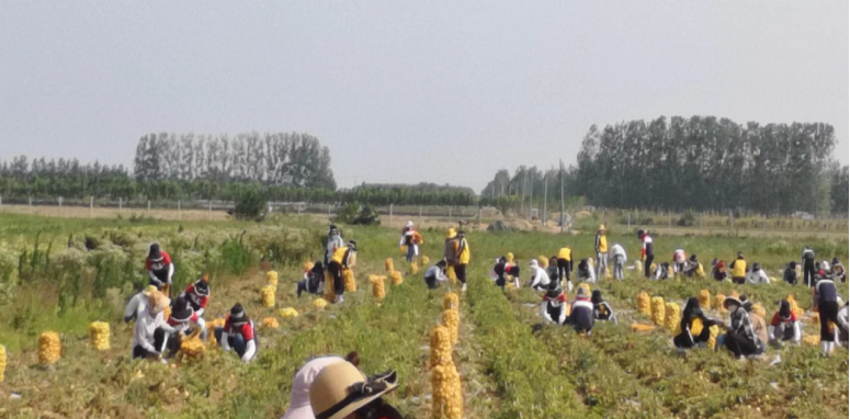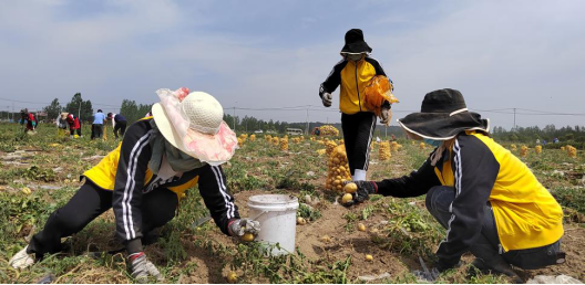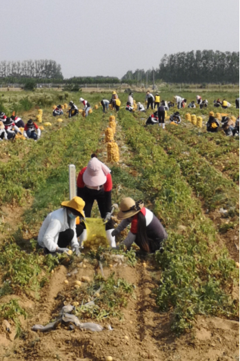 占地700余亩的沃勤产业园里土豆喜获丰收、茄子缀满枝头、西红柿一身红装、黄瓜等人采收。恰值农忙时节,各家各户都在各自忙碌,产业园里一时出现人员紧缺的情形。华杰教育集团董事会领导得知这一消息后,便会同后勤保障部领导商量决定,利用这个契机来一次团结合作、互帮互助的团建活动。各校总务处接到通知后立即响应,迅速组织抽调人力组成“百人大团”,顶着当头烈日驱车前往沃勤产业园,帮助抢收土豆。