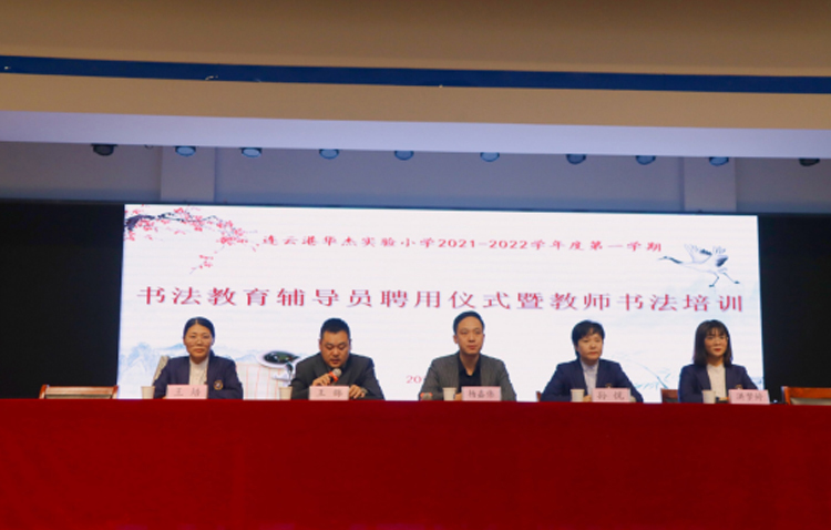 ——连云港华杰实验小学书法教育辅导员聘用仪式暨教师书法培训撰稿人:洪梦婷诗句有云:翰砚名书楷上流,墨端润笔隶诗酬。情倾泰斗行神韵,缘帖山峰草篆秋。为落实“双减”政…