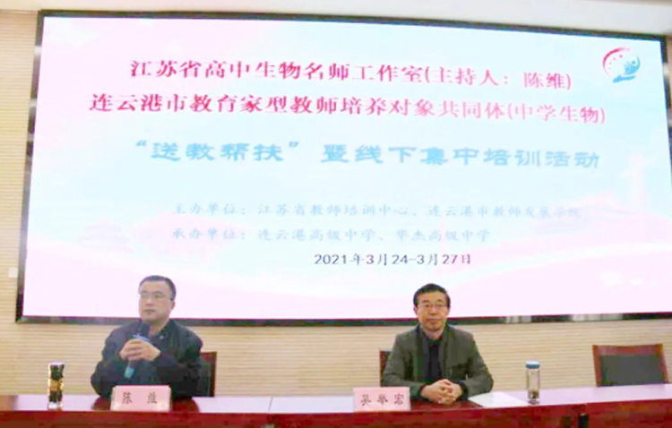 江苏省陈维网络名师工作室活动在华杰高中举行3月25日,江苏省陈维网络名师工作室“送教帮扶”暨线下集中培训活动在华杰高中举行,来自江苏省各学校的工作室成员、连云港市初…